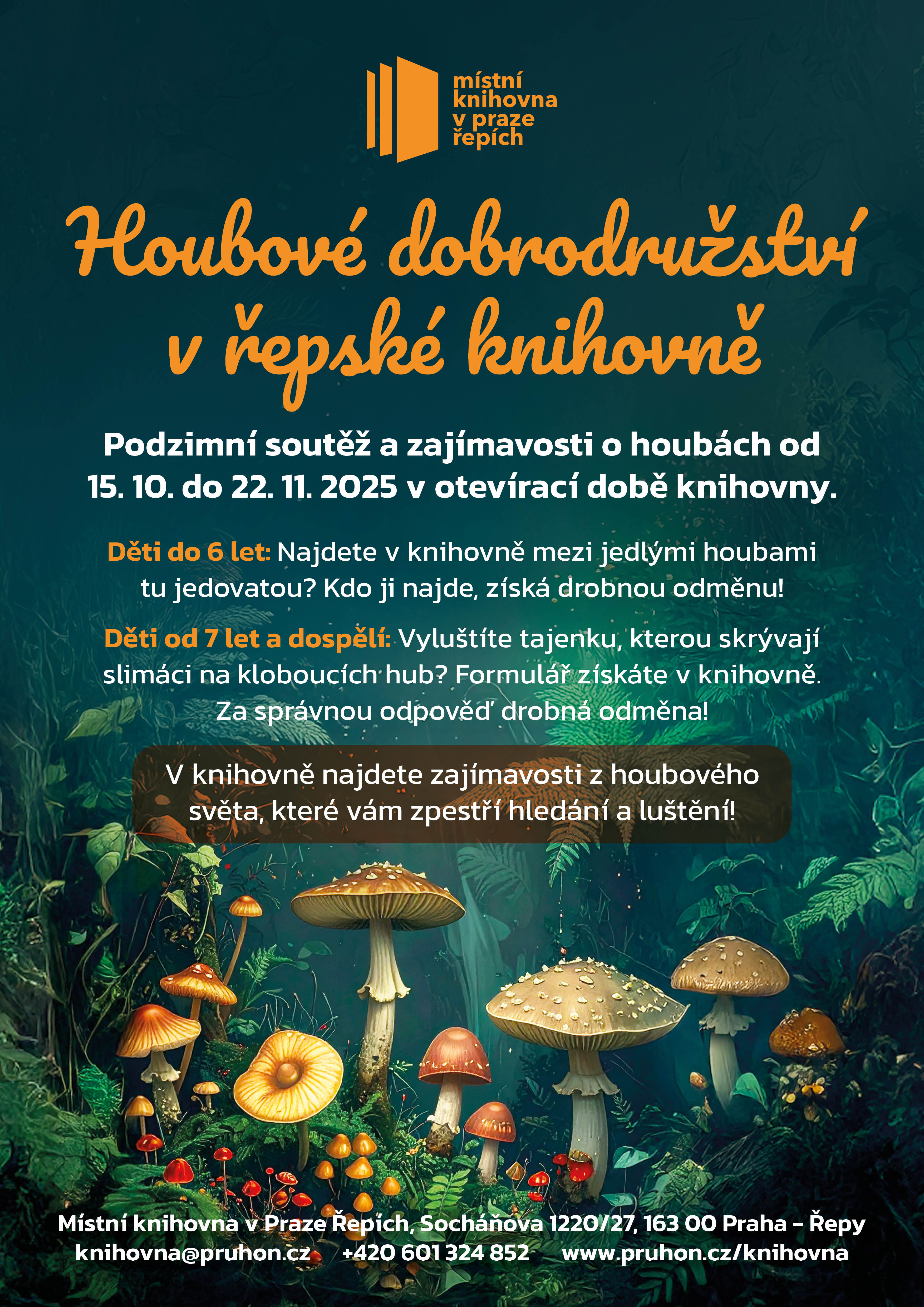 Přijďte do řepské knihovny, objevujte zajímavosti z houbového světa a zapojte se do naší podzimní soutěže pro malé i velké.