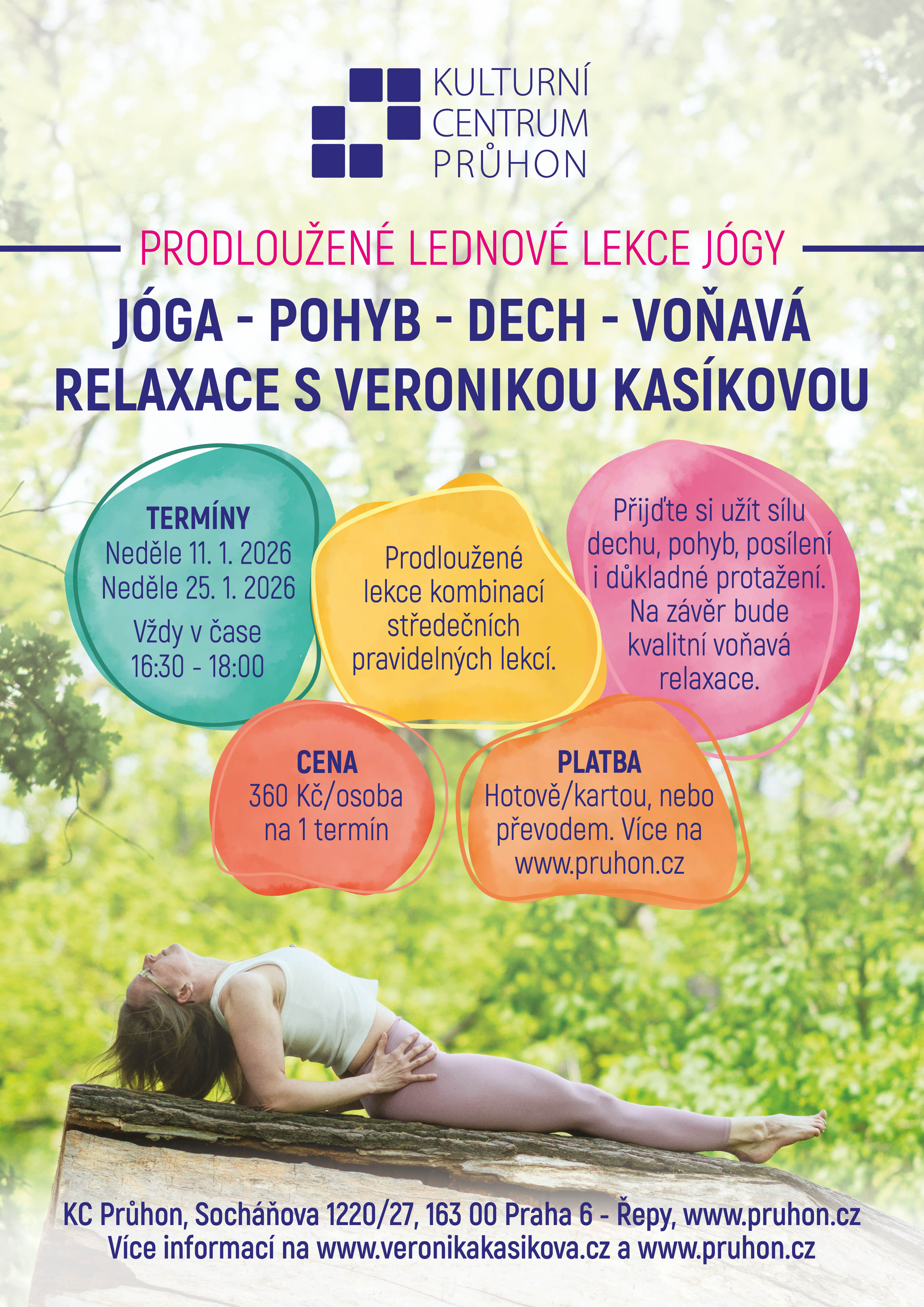 Na 8. únor a 8. březen 2026 se můžete těšit na jógové workshopy. Pro více informací sledujte program akcí KC Průhon.